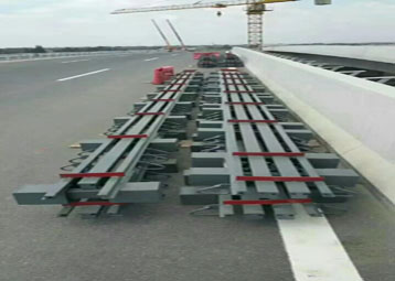 橋梁伸縮縫:指的是為滿足橋面變形的要求,通常在兩梁端之間、梁端與橋臺之間或橋梁的鉸接位置上設(shè)置伸縮縫。要求伸縮縫在平行、垂直于橋梁軸線的兩個方向,均能自由伸縮,牢固可靠,車輛行駛過時應(yīng)平順、無突跳與噪聲;要能防止雨水和垃圾泥土滲入阻塞;安裝、檢查、養(yǎng)護、消除污物都要簡易方便。 在設(shè)置伸縮縫處,欄桿與橋面鋪裝都要斷開。
